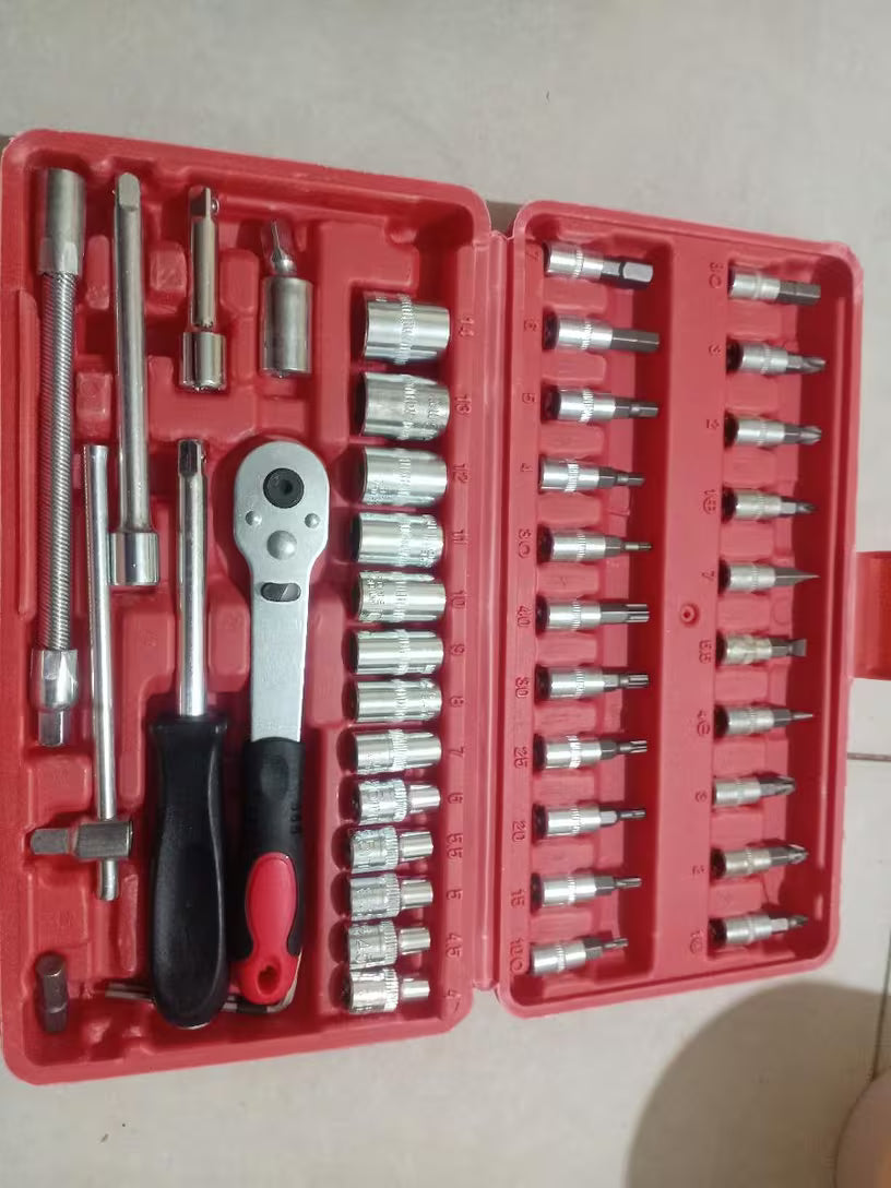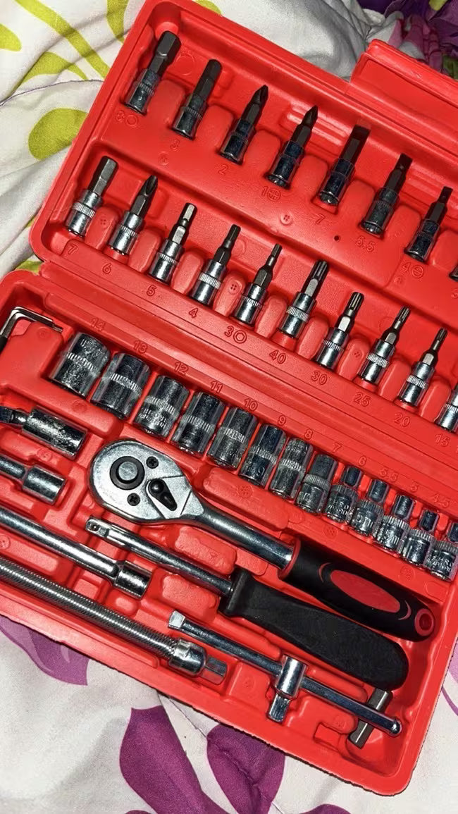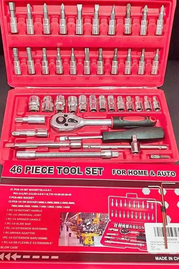 Kit Profesional de 46 Piezas con Matraca y Dados de Acero Reforzado. Diseñado para principiantes y expertos. ¡Una inversión garantizada para durar!"