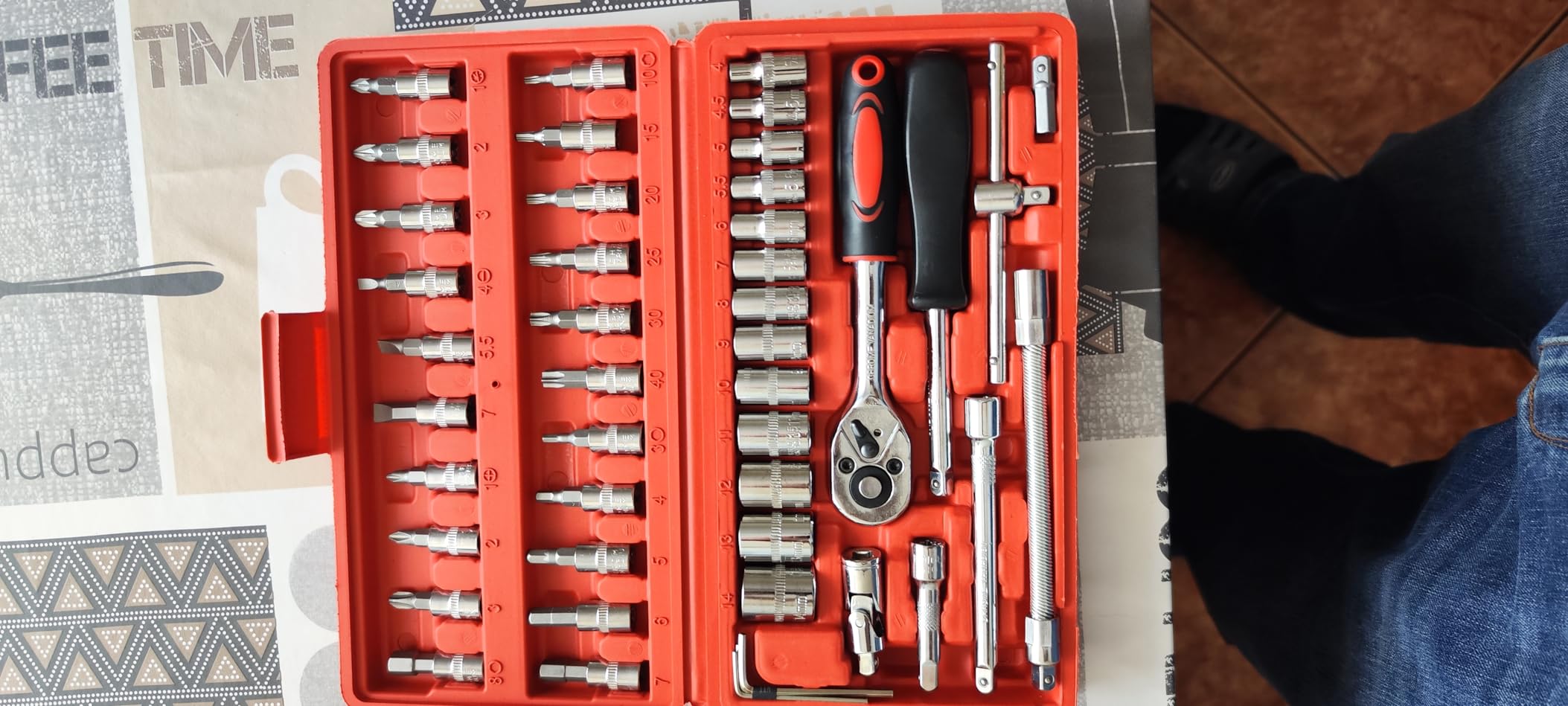 "Excelente juego de llaves y dados. Los materiales se sienten de muy buena calidad y el estuche es súper práctico. Lo he usado varias veces y sigue como nuevo."