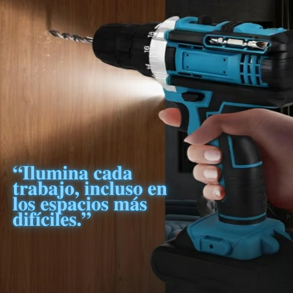 ¡ Te presentamos "La herramienta ideal" para tus proyectos en casa o el taller! Este taladro inalámbrico combina un diseño ergonómico con la fuerza necesaria para perforar y atornillar con total precisión. Olvídate de los cables y trabaja con total libertad en cualquier lugar.